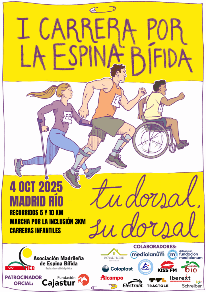 La Asociación Madrileña de Espina Bífida (AMEB) organiza con gran ilusión su I Carrera Solidaria por la Espina Bífida, un evento deportivo y solidario que se celebrará el próximo sábado 4 de octubre en el Parque Juan Carlos I, en el distrito de Barajas. Bajo el lema “Tu dorsal, su dorsal”, la cita pretende dar visibilidad a esta malformación congénita que afecta a la espina dorsal, así como recaudar fondos para el mantenimiento y mejora de los servicios y proyectos de la asociación, destinados a mejorar la calidad de vida de las personas que forman parte de ella. La carrera contará con la presencia de Marta Ferrer, periodista y locutora del programa “Las Mañanas Kiss” de Kiss FM, que ejercerá como speaker oficial y animadora de una jornada inclusiva, familiar y solidaria. Además de promover el deporte y la participación activa de personas de todas las edades y condiciones, el evento busca sensibilizar a la población sobre la importancia de la prevención de la espina bífida mediante el consumo de ácido fólico antes y durante el embarazo, dado que sus causas actuales son desconocidas. La jornada contará con diferentes modalidades y recorridos adaptados a todos los públicos y edades: INSCRÍBETE AQUÍ.